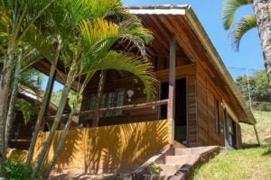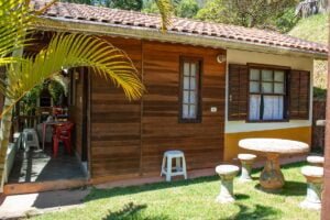 Os chalés com vista para as montanhas em clima serrano trás aconchego e romantismo ao ambiente que por sua vez tem na sua construção a madeira.